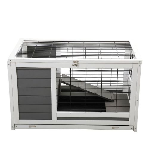 Home > Luxury 2-Storey Pet House Box Wooden Cage Comfy Cabin for Small Animals, Grey White