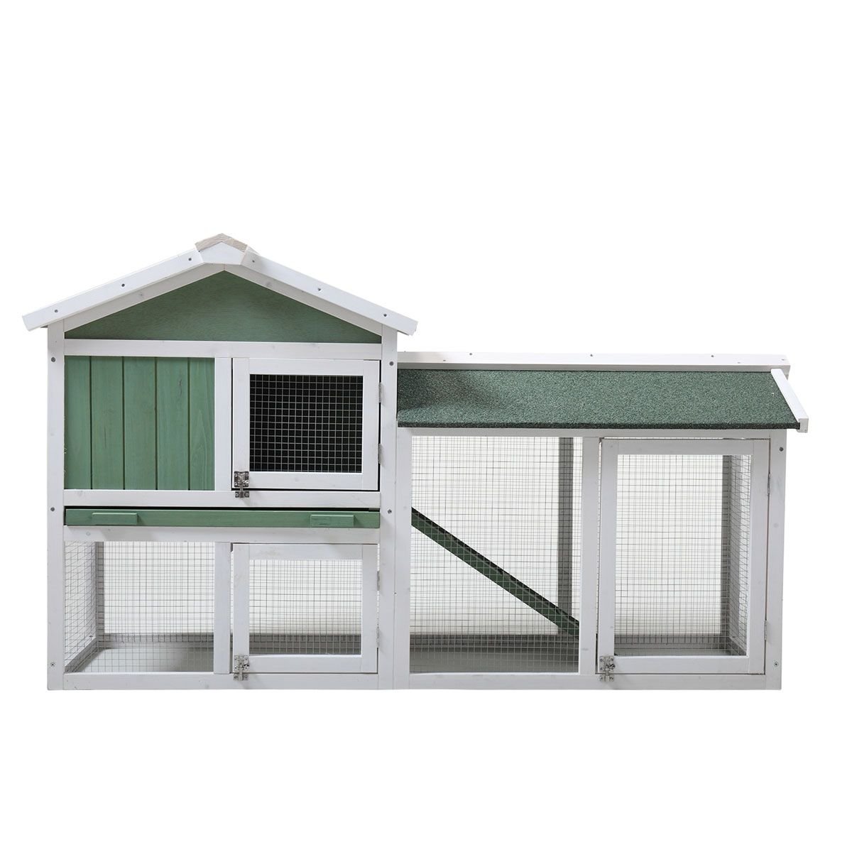 Home > Large Wooden Rabbit Hutch Indoor and Outdoor Bunny Cage with a Removable Tray and a Waterproof Roof, Grey Green+White