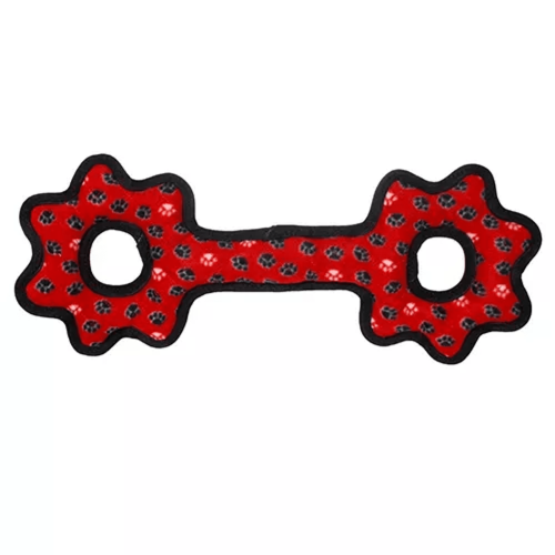 Tuffy Ultimate Tug-O-Gear Pink Leopard. Great for interactive play with one or multiple dogs. Best for dogs who like to whip their toys and play tug for hours. Floats in water, and its machine washable, (air dry). 4 LAYERS OF MATERIAL Tuffy Ultimate toys are made with UP TO 4 layers. 1 layer soft fleece on the outside. 1 to 2 layers of industrial grade luggage material on the inside. 1 layer of plastic coating on the inside.