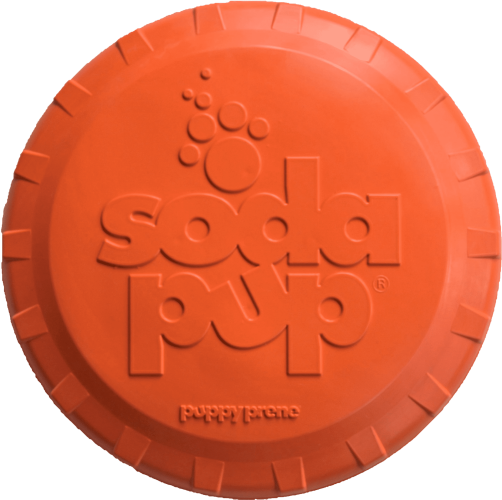 Natural rubber flyer cleverly designed in the shape of an old-fashioned bottle cap for retrieving with your dog. Soft but durable rubber won't harm dogs' teeth and gums like plastic frisbees.