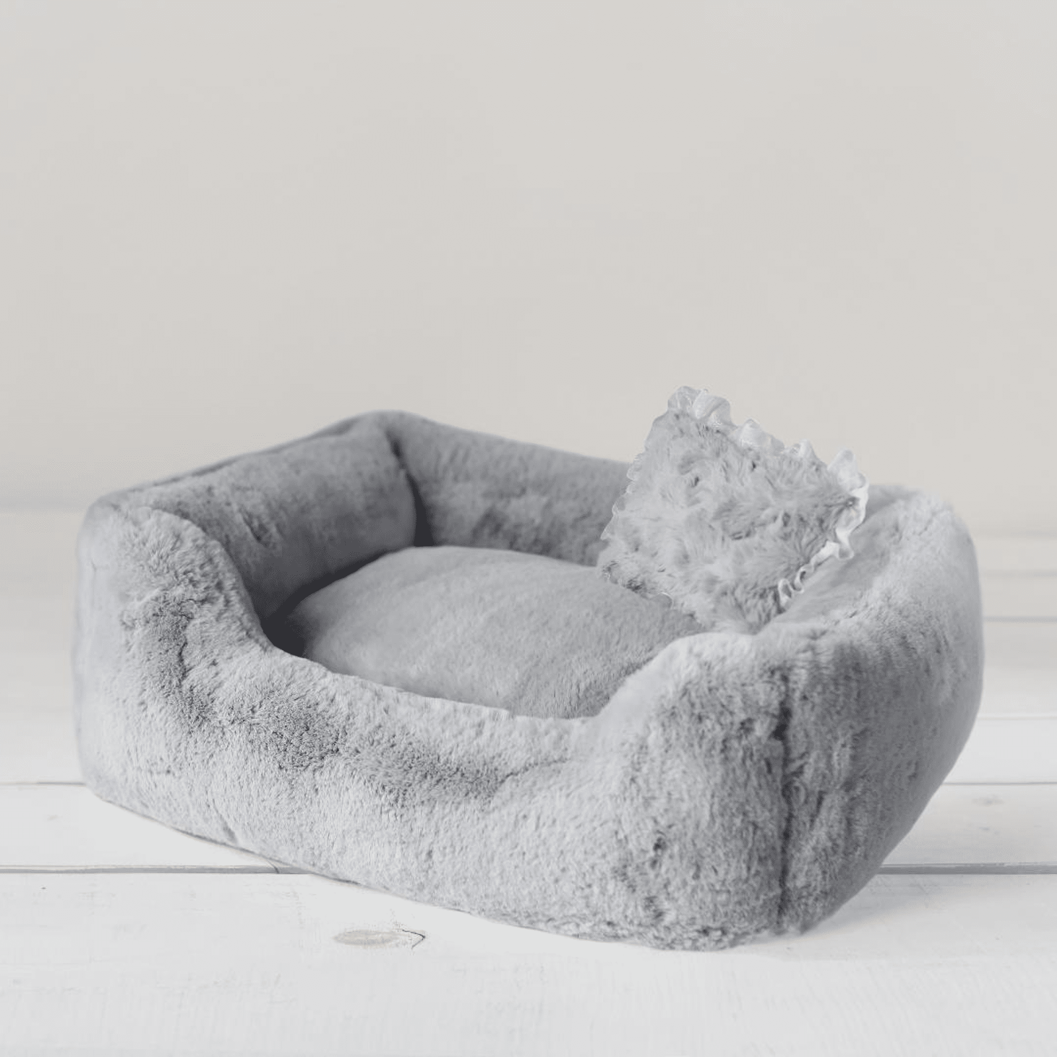 Hello Doggie is excited to debut our new luxurious Divine Bed. Made with only the softest, most luxurious high-end fabric, any pup would dive right into this bed to enjoy a long slumber. The overstuffed pillow allows your pampered pooch to sink into bliss while the low bolster front allows for easy access. The Divine Bed is machine washable in cold water with mild detergent on a delicate cycle, air dry or air fluff with no heat but for best results we recommend dry cleaning.