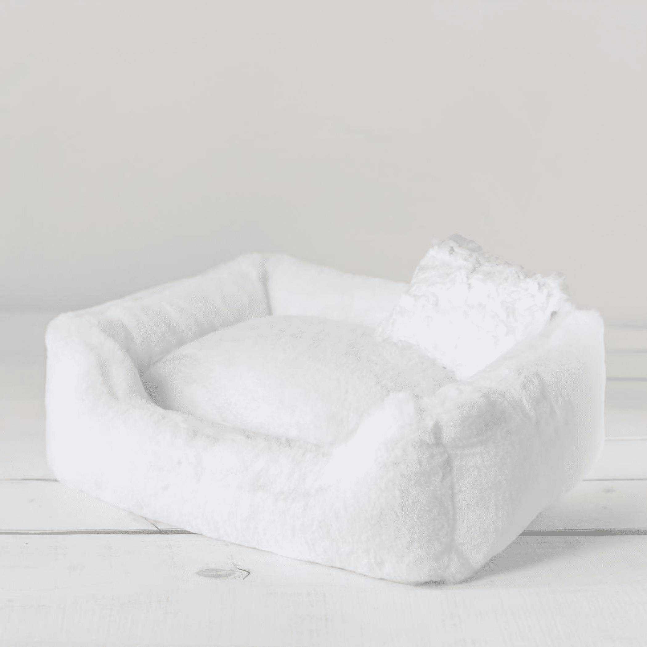 Hello Doggie is excited to debut our new luxurious Divine Bed. Made with only the softest, most luxurious high-end fabric, any pup would dive right into this bed to enjoy a long slumber. The overstuffed pillow allows your pampered pooch to sink into bliss while the low bolster front allows for easy access. The Divine Bed is machine washable in cold water with mild detergent on a delicate cycle, air dry or air fluff with no heat but for best results we recommend dry cleaning.