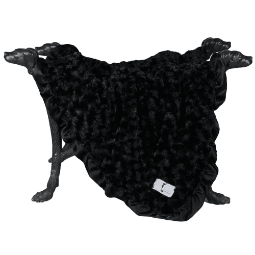 Snuggle your pup in this soft and silky dog blanket for a night of sweet dreams. This cozy dog blanket has a finishing touch of a ruffle satin trim. This blanket is perfectly paired with our dog cribs or any of the dog beds in the following colors available.