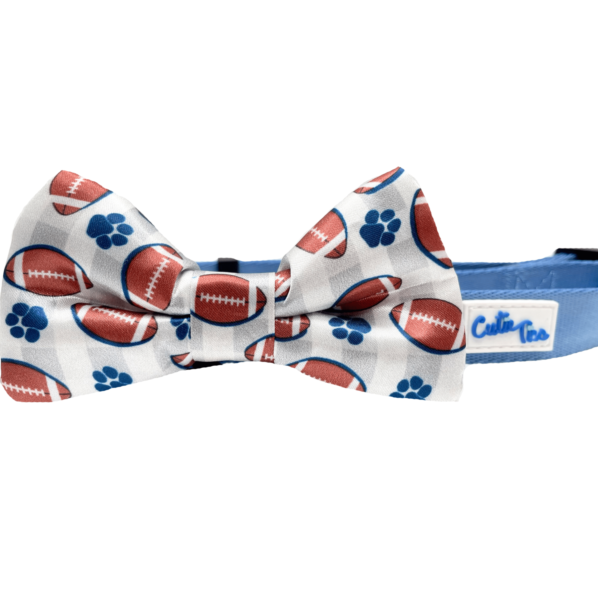 Our bow ties are made with high-quality fabric and thickly sewn; contributing to its durability. All bow ties are 2" x 4" and fastens securely over any dog collar easily with the two elastic loops on the back of the bow tie - as seen in pictures. Collar not included.