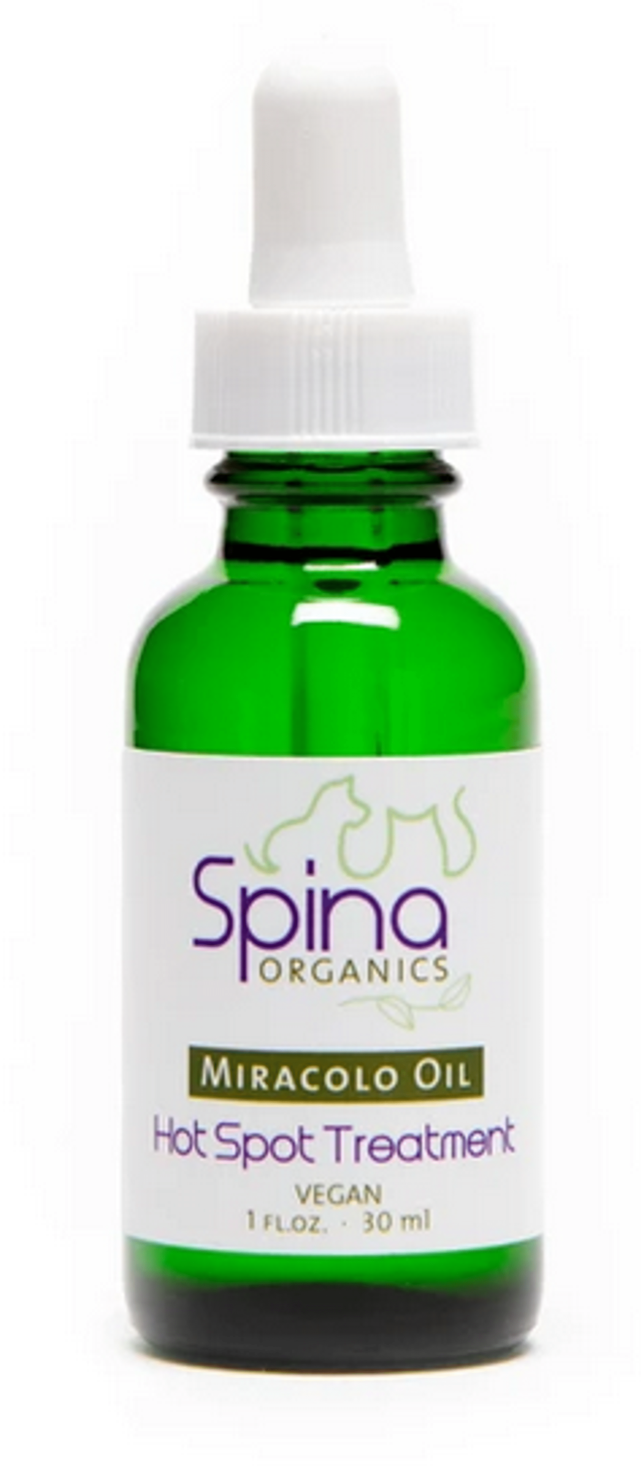 As its Italian name implies, Miracolo Oil Hot Spot Treatment is enriched with a healing, rich blend of botanical extracts, that work miracles on small wounds and irritated itchy spots. Miracolo oil is a proprietary blend of organic oils, naturally rich in Vitamin E, with antioxidant effects that moisturize and fight inflammation. Watch the bites, itchiness, and abrasions disappear in record time with just a small drop of our soothing, organic treatment oil. Infused with Argan, Grapeseed, Avocado, Prickly Pear, and Sunflower oils, among others, these oils are naturally harvested from the earth and carefully selected for their medicinal benefits for your pet. This blend of organic botanicals and essential oils work as great on humans as it does on pets, and you'll be sharing it if your bff lets you!